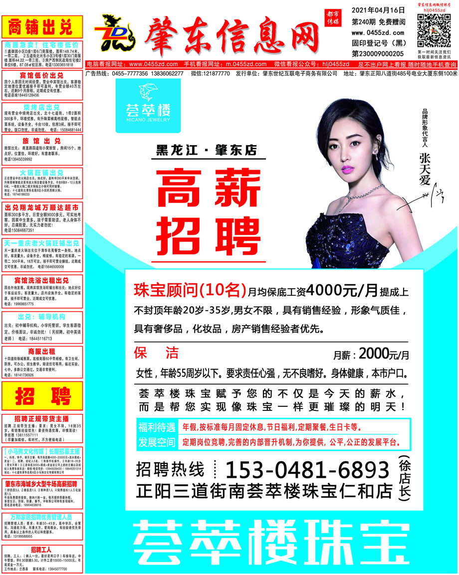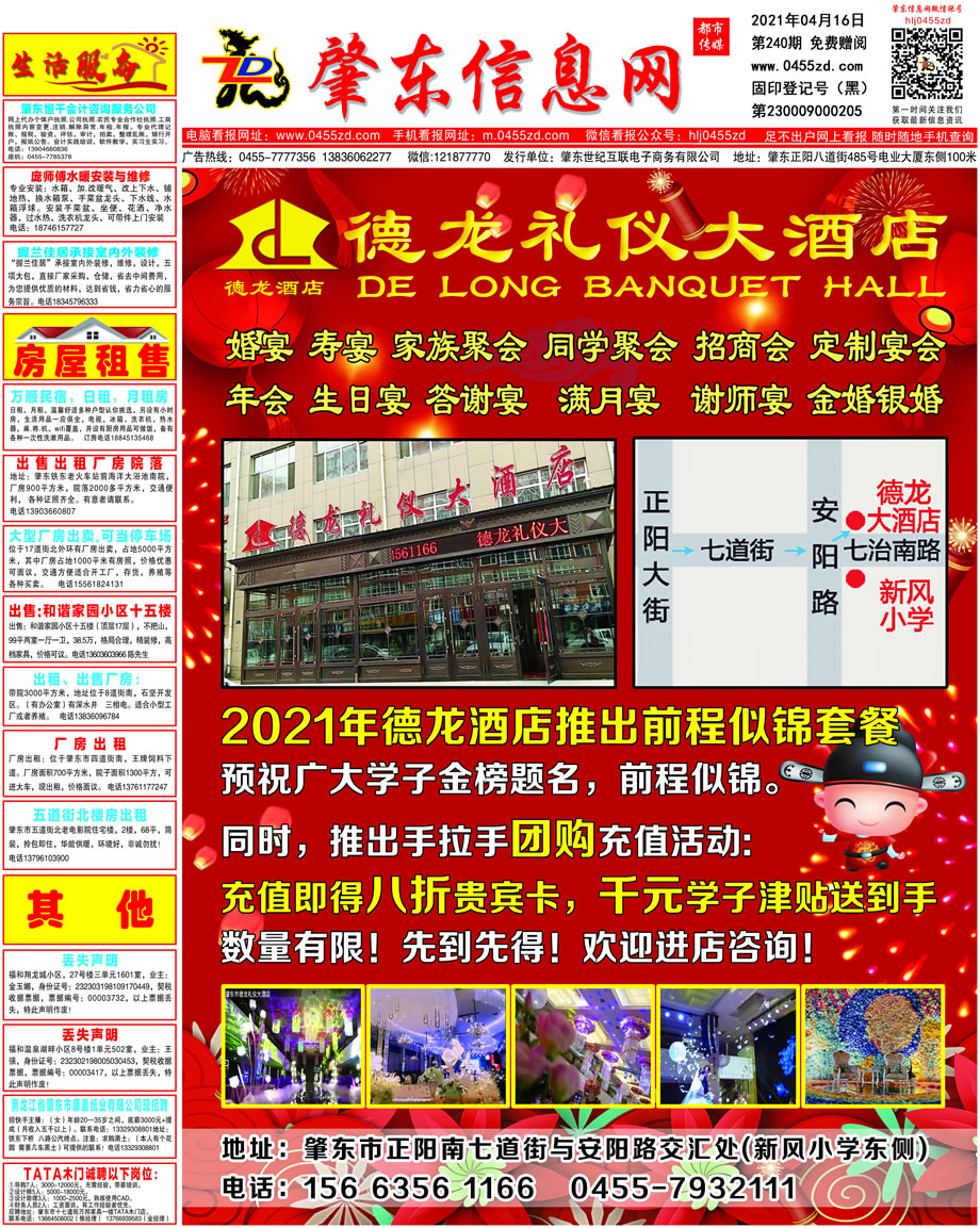 肇東信息網(wǎng)DM報(bào)紙2021年4月16日第240期