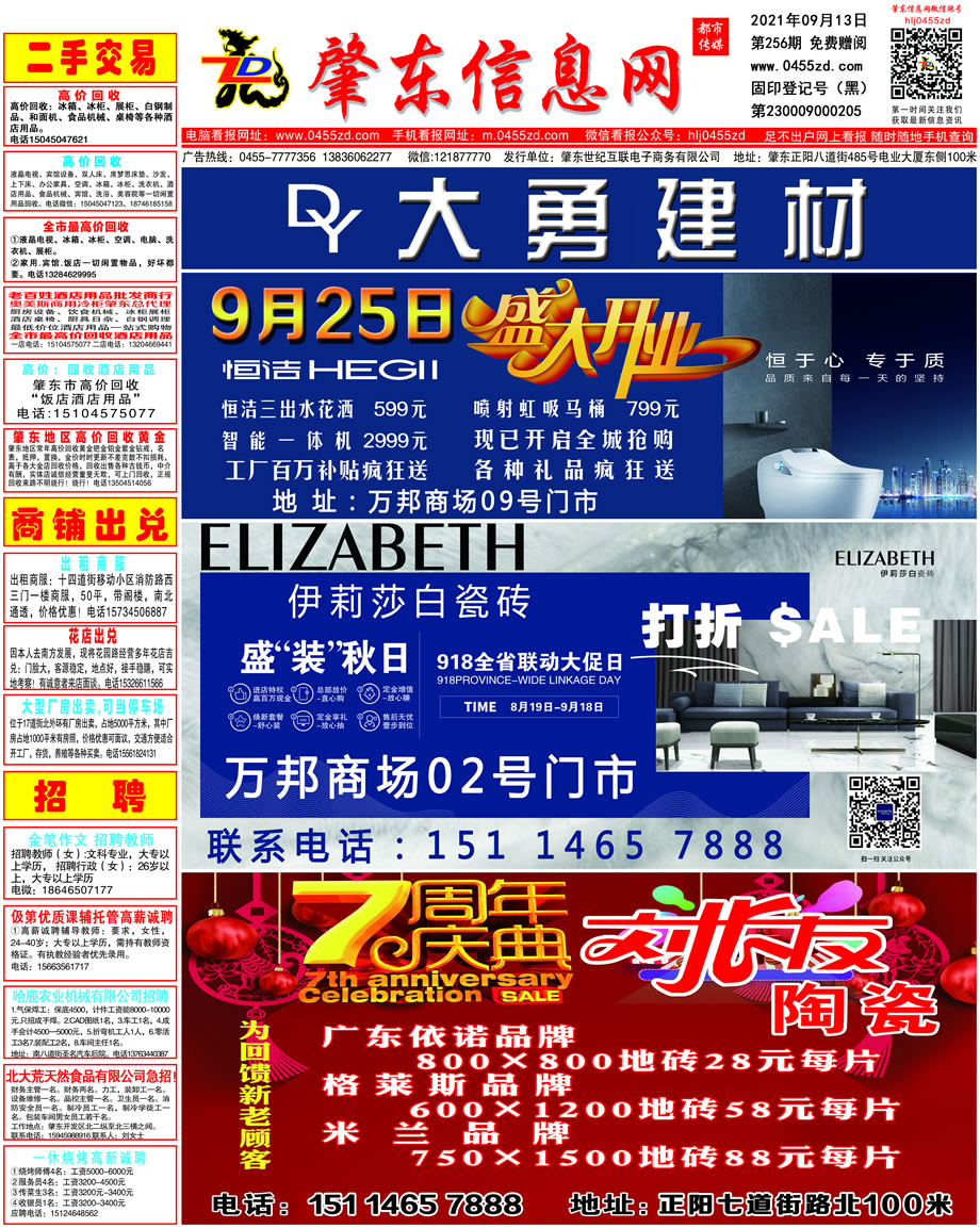 肇東信息網(wǎng)DM報(bào)紙2021年9月13日第256期