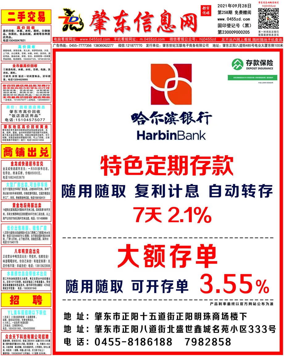 肇東信息網(wǎng)DM報(bào)紙2021年9月28日第258期