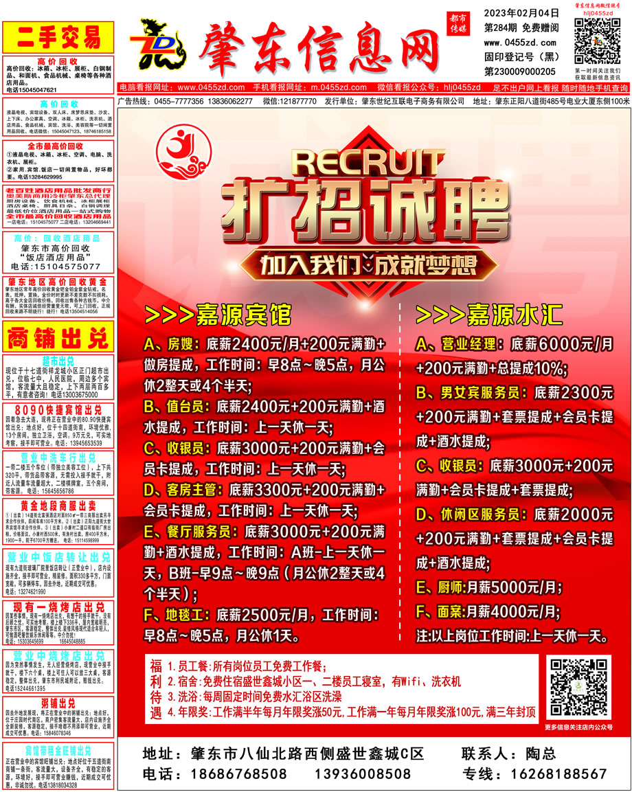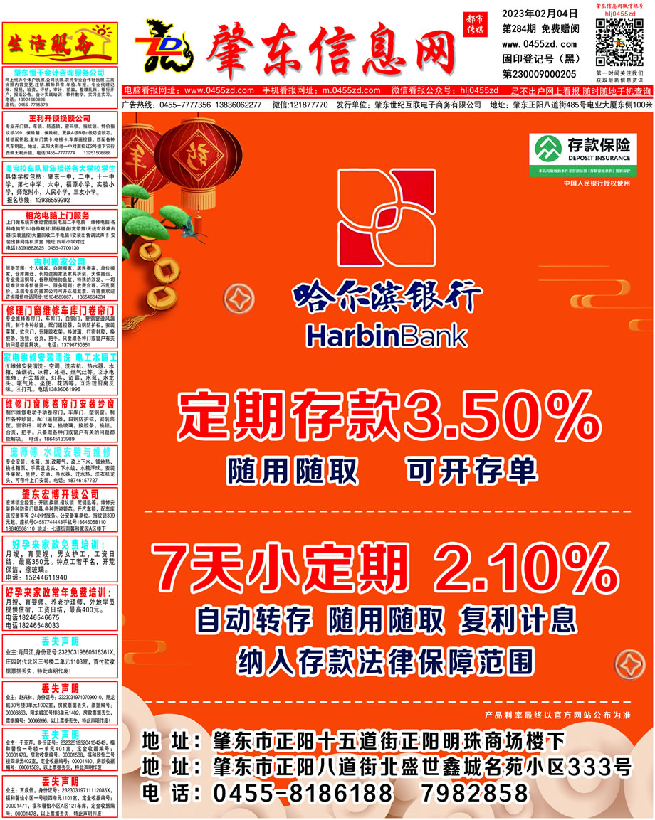 肇東信息網(wǎng)DM報(bào)紙2023年2月4日第284期