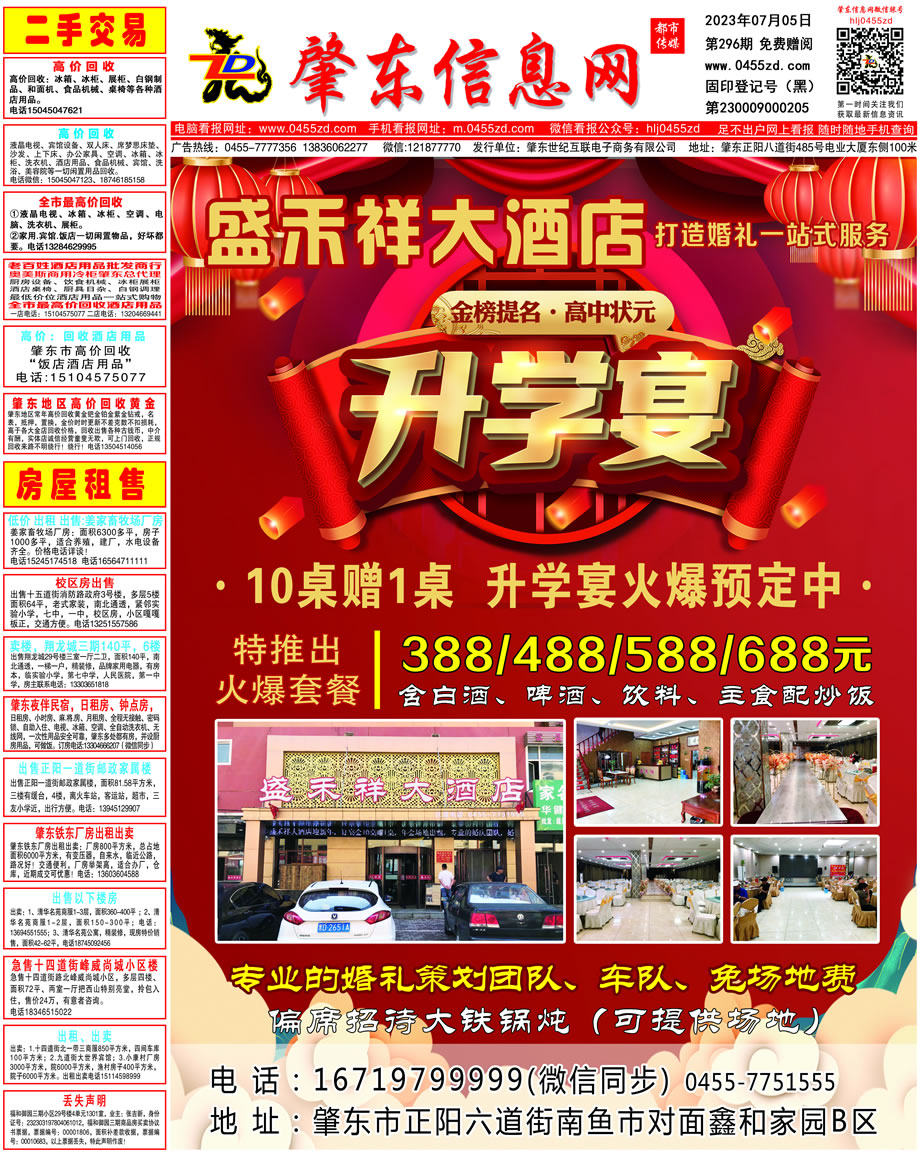 肇東信息網(wǎng)DM報(bào)紙2023年7月5日第296期