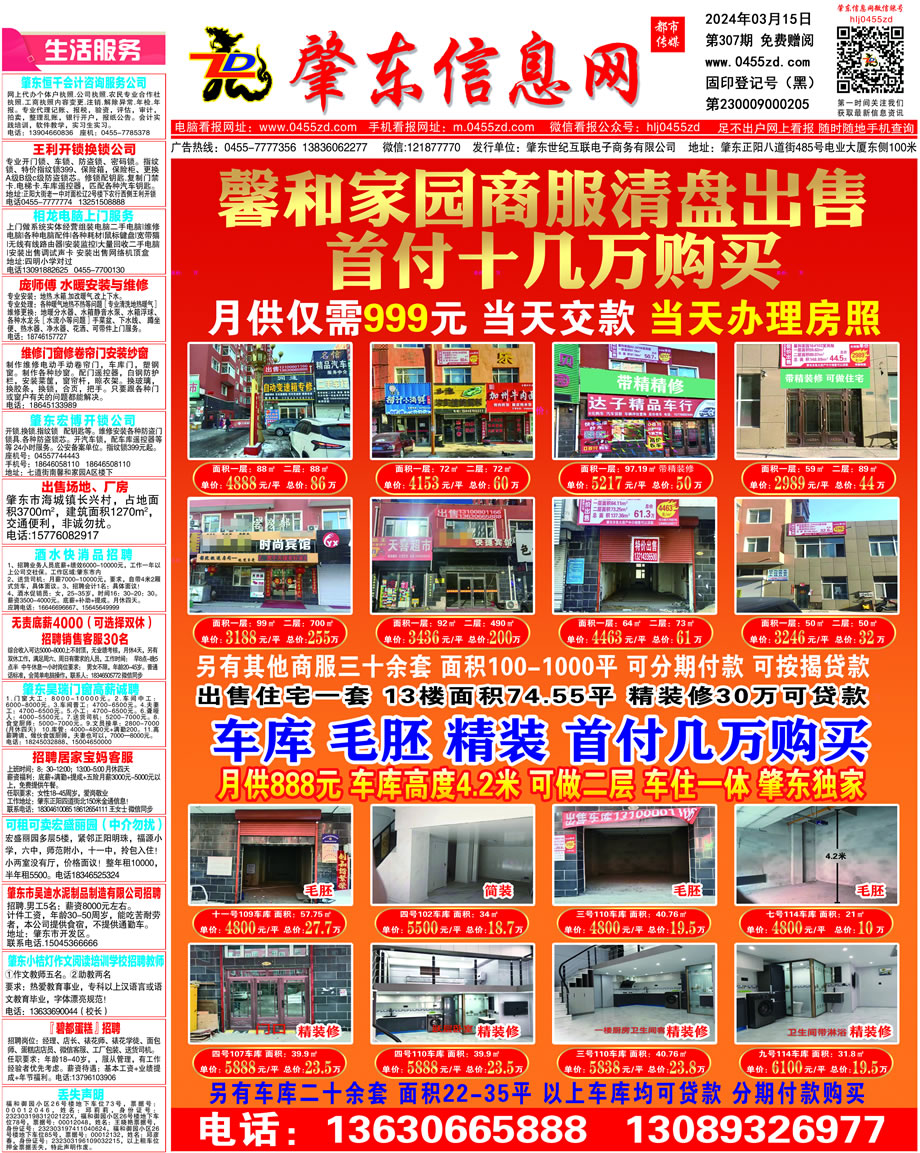肇東信息網(wǎng)DM報(bào)紙2024年3月15日第307期