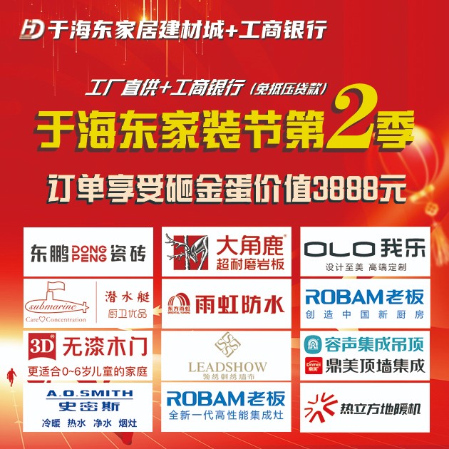于海東家居建材城、主要經(jīng)營:東鵬瓷磚、大角鹿、我樂櫥柜、老板電器、史密斯熱水器等品牌!