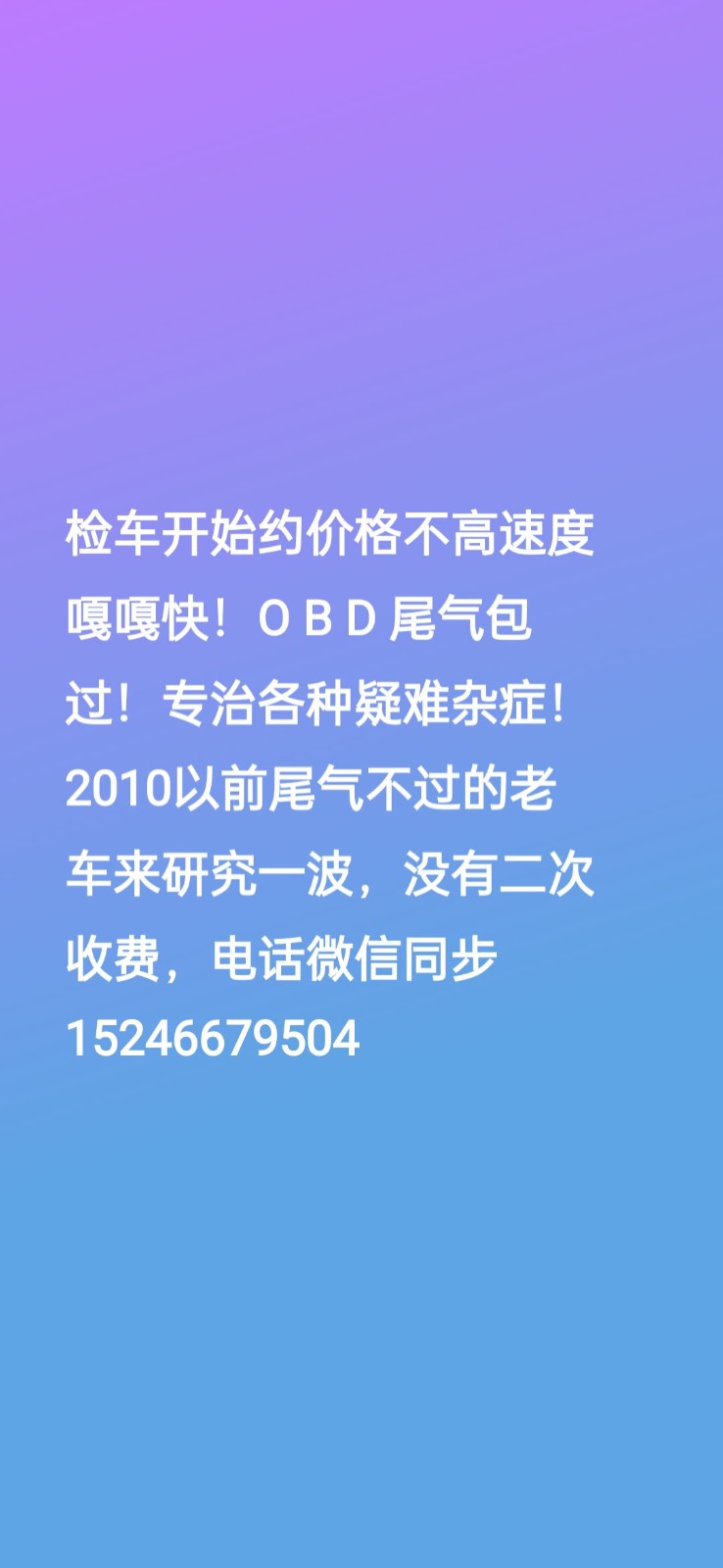 檢車開始約價(jià)格不高速度嘎嘎快!O B D 尾氣包過!專治各種疑難雜癥!2010以前尾氣不過的老車來研究一波,沒有二次收費(fèi),電話微信同步15246679504