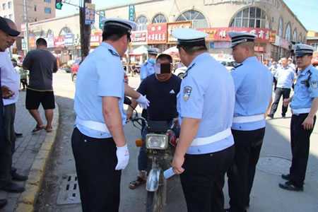 肇東市公安局交警大隊聯(lián)合農(nóng)村派出所開展摩托車專項整治行動
