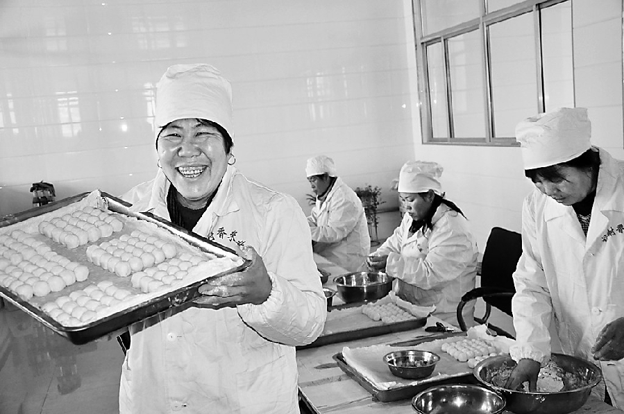圖為里木店鎮(zhèn)裕村香谷物種植合作社正在手工生產(chǎn)的有機粘豆包!  拔覀兇鍙秃仙绯珜в袡C肥取代化肥,人工除草代替除草劑,在綠色有機條件下種植的谷子,又瞄準中高端市場...