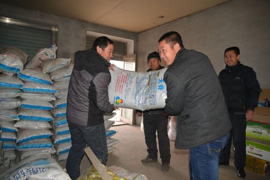 2月27日解永杰(右一)組織農民裝運化肥。  肇東市西八里鎮(zhèn)西八里村農民解永杰近兩年精心經銷化肥,指導農戶科學合理施肥,有時還送貨上門,助力備春耕。今年,解永杰...