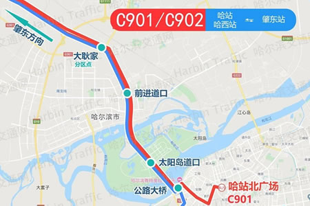 肇東至哈市城際公交分為兩條線路。其中,C901路始至哈站,C902路始至哈西站。主要站點(diǎn)途經(jīng)“肇東火車站”、“三道街”站、“大耿家”站、“前進(jìn)道口”站、“太陽島...