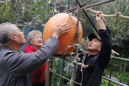 日前,黑龍江省綏化市肇東市80歲高齡的趙瑞琴老人,在自家的小菜園里收獲了一個(gè)50斤重的大南瓜。 收獲時(shí),左鄰右舍都來幫老人摘瓜。兩個(gè)中年人費(fèi)好大勁兒,才將這個(gè)“...