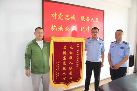 8月16日,肇東市民苗建臣的家人來到肇東市公安局交警大隊,送來一面印有“無私救人獻愛心,品德高尚暖人心”的錦旗,對輔警丁銳熱心救助其父親的行為表示由衷的感謝。8...