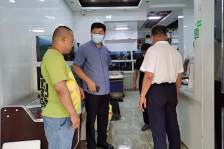 在餐飲店檢查時(shí),田宇副市長(zhǎng)要求飯店、海鮮店等食品經(jīng)營(yíng)場(chǎng)所,強(qiáng)化防疫“三寶”措施的執(zhí)行力度,落實(shí)好食品安全主體責(zé)任,嚴(yán)格履行食品進(jìn)貨查驗(yàn)義務(wù)。