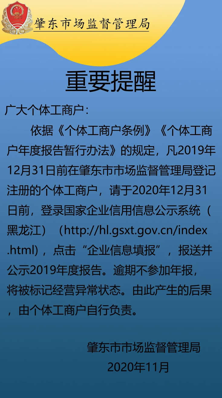 未參加年報,有哪些嚴重后果?請看肇東市市場監(jiān)督管理局的重要提示:
