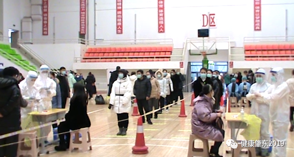 登記區(qū)運(yùn)用信息化技術(shù),使用電腦、身份證掃碼儀、掃碼槍進(jìn)行身份登記和條碼識別,使登記環(huán)節(jié)的速度大大提高。采樣區(qū)按照1:10混采方式操作,每采樣一人按照七部洗手法進(jìn)行消毒一次,一人采樣,一人收儲。兩組采樣隊通道使用隔離帶進(jìn)行間隔,登記區(qū)與采樣區(qū)11米距離,中間用一米黃線間隔,居民在等候區(qū)綠色地標(biāo)帶處等候,由民警站崗維持順序,等候區(qū)外的居民秩序由小社區(qū)干部佩戴疫情防控工作人員的紅色袖標(biāo)站崗維持秩序。居民進(jìn)入登記區(qū)后腳踏在黃色隔離帶上,保證間隔距離,進(jìn)出兩個通道,現(xiàn)場秩序井然,當(dāng)所有采集任務(wù)結(jié)束后,人民醫(yī)院和第一醫(yī)院的轉(zhuǎn)運(yùn)人員分別把標(biāo)本轉(zhuǎn)運(yùn)箱送至等候在體育館外的本單位負(fù)壓救護(hù)車上,人員清場之后,疾控部門的消殺人員對現(xiàn)場進(jìn)行了消殺處理,整個演練過程進(jìn)行了2個小時。之后參加演練的單位召開會議,進(jìn)行了總結(jié),對發(fā)現(xiàn)的問題提出了整改意見,為我市下步全員核酸采集起到了很好的示范作用。