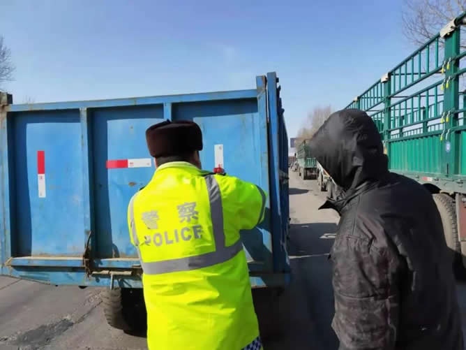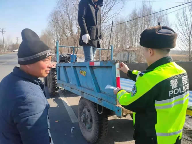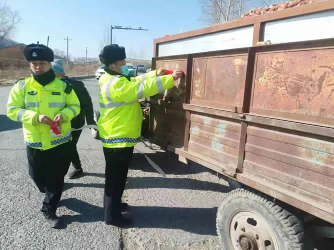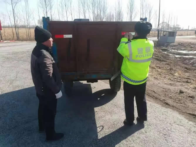 肇東交警大隊(duì)粘貼反光標(biāo)識 備春耕保安全