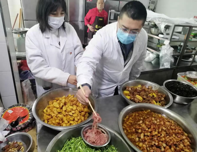 會(huì)務(wù)期間,市場(chǎng)監(jiān)督管理局工作人員每天在參會(huì)代表們用餐前一小時(shí)到達(dá)現(xiàn)場(chǎng),對(duì)參保單位進(jìn)行現(xiàn)場(chǎng)監(jiān)督,確保參保單位人員規(guī)范操作,嚴(yán)格按照食品加工流程規(guī)范管理。