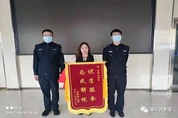4月19日,肇東市居民宿女士來到南城派出所,將一面印有“優(yōu)質(zhì)服務 為民解憂”的錦旗送給派出所民警,以表達民警為其找回手機的感激之情。