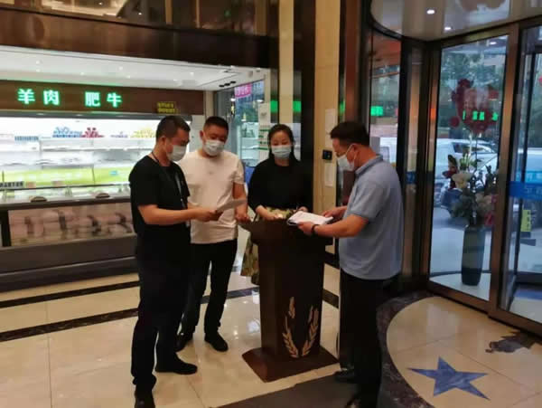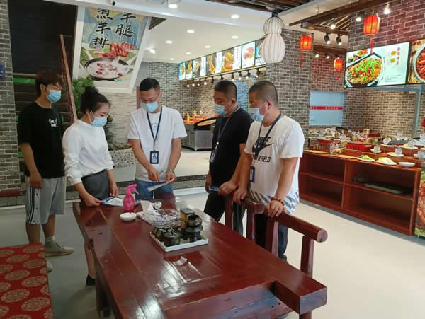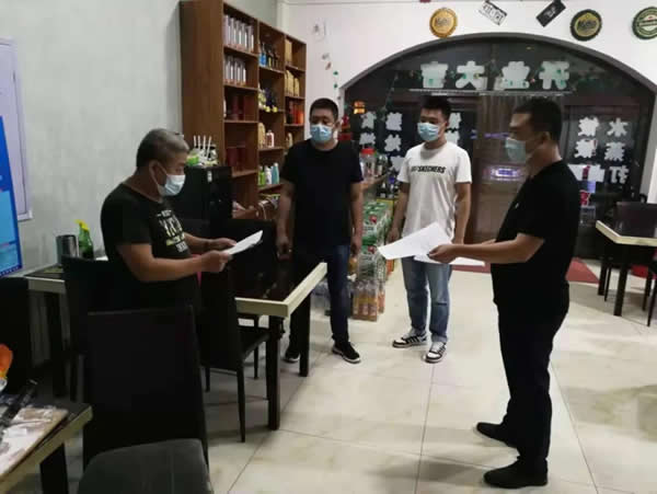 下午13時,我與志州對轄區(qū)2家大型餐飲場所進行了日常巡查,局里負責(zé)督導(dǎo)的兩位同志就趕到啦。我們4個人一起投入疫情防控工作中。