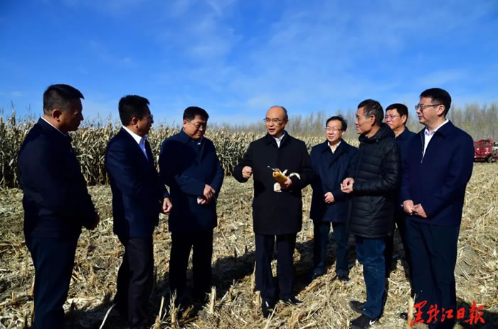 秋天的田野一派豐收景象。向陽鄉(xiāng)日新村秋收現(xiàn)場機械轟鳴,許勤健步走在剛剛收獲的地塊上,手拿玉米棒與農技人員細算增產(chǎn)增收賬,詳細了解品種、產(chǎn)量、成熟度、收獲進度等情況。他強調,今年又是一個豐收年,要抓住晴好天氣搶收,力爭10月25日之前完成收獲任務。要深化農業(yè)供給側結構性改革,調優(yōu)農業(yè)種植結構,引進培育高產(chǎn)量、高質量、高營養(yǎng)成分的新品種,發(fā)揮寒地、黑土優(yōu)勢,打造綠色有機、非轉基因、富硒等龍江特色農業(yè)品牌,發(fā)展科技農業(yè)、綠色農業(yè)、質量農業(yè)、品牌農業(yè),提高農業(yè)比較效益,促進持續(xù)穩(wěn)定增收。停在地頭的國產(chǎn)大型農業(yè)機械引起了許勤的濃厚興趣,他說,我省是裝備制造業(yè)基地,也是農業(yè)大省,發(fā)展農機裝備制造業(yè)大有可為,要加強研究謀劃,做好這篇大文章。