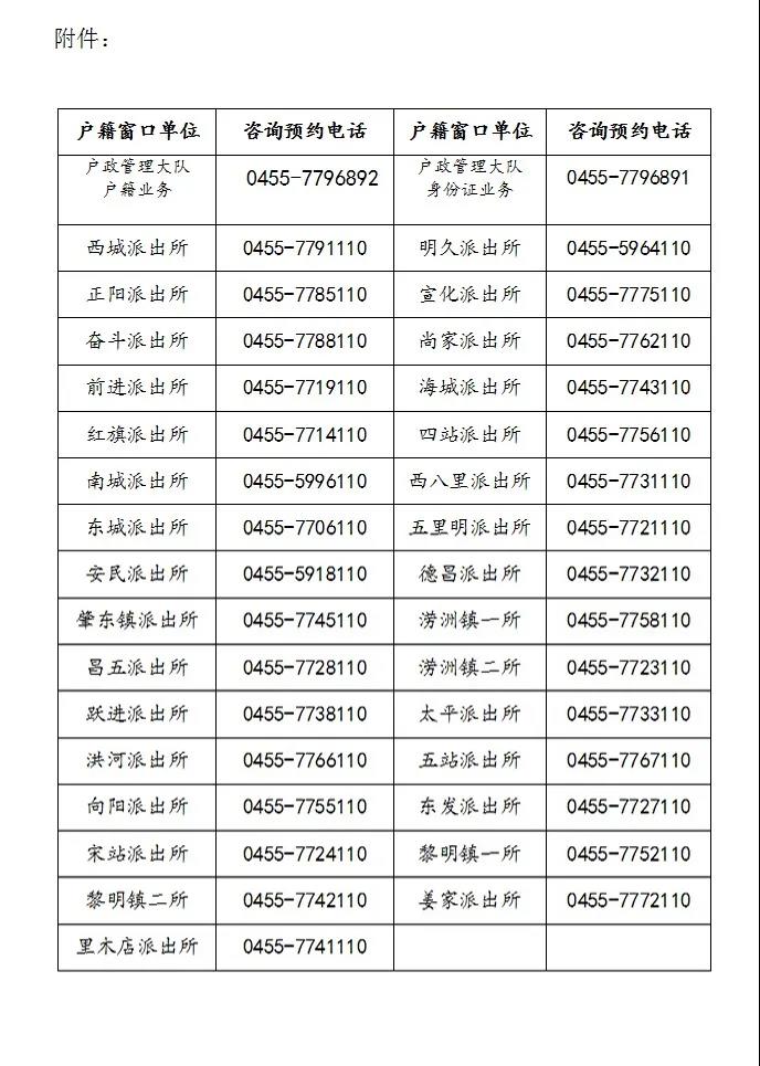 附件:公安機(jī)關(guān)戶籍窗口單位咨詢及預(yù)約電話