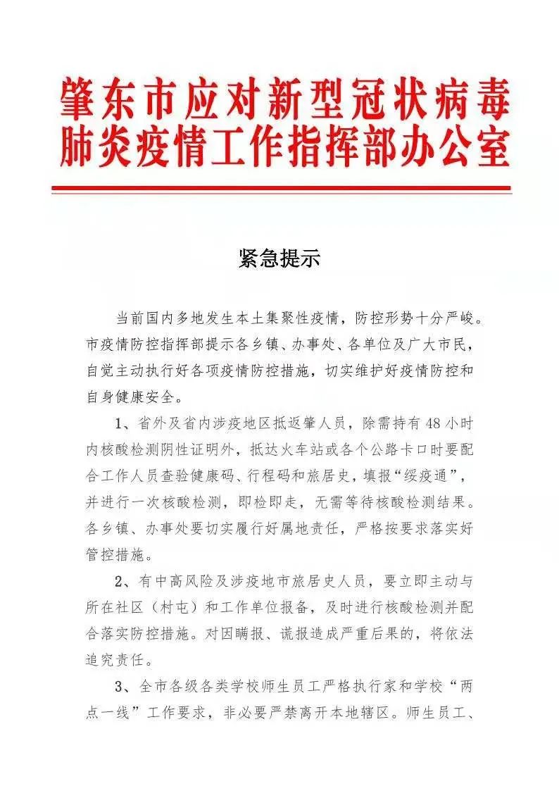 當(dāng)前國內(nèi)多地發(fā)生本土集聚性疫情,防控形勢十分嚴(yán)峻。市疫情防控指揮部提示各鄉(xiāng)鎮(zhèn)、辦事處、各單位及廣大市民。自覺主動執(zhí)行好各項(xiàng)疫情防控措施,切實(shí)維護(hù)好疫情防控和自身健康安全。
