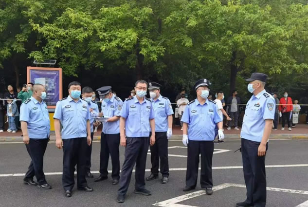 期間,各警種密切配合、協(xié)同作戰(zhàn),在考點外設(shè)立執(zhí)勤點,劃定管戒區(qū)域,各參戰(zhàn)民警、輔警頭頂烈日、耐著高溫,始終嚴格遵守紀律、警容嚴整,認真履行保衛(wèi)職責,在各考點及周邊科學部署警力,設(shè)立警戒線,維護考點秩序,確?键c及周邊安全穩(wěn)定。交警部門在各考點及附近路段設(shè)置禁鳴、禁停、限速、警戒線、禁止通行和繞行等醒目交通標志,對車輛進行交通管制,加強周邊道路交通疏通,確?键c及城區(qū)道路交通安全暢通。巡特警部門加強考點及周邊巡邏防控,強化顯性用警,壓降案件,確保平安。同時,警務督察部門還對各警種進行督導檢查,確保了中考安保各項措施落實見效。