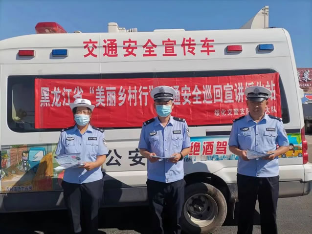 肇東市公安局交警大隊開展“美麗鄉(xiāng)村行”大篷車送交通安全活動