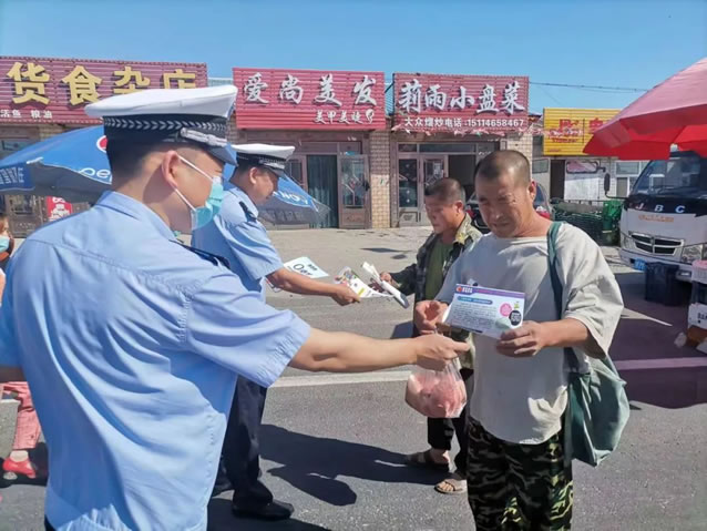 活動中,民警乘農(nóng)閑的有利時機,結(jié)合當前交通安全宣傳工作實際,通過大篷車巡回宣講、懸掛宣傳條幅、發(fā)放交通安全宣傳資料、解答群眾交通安全咨詢等多種宣傳方式,向廣大農(nóng)民群眾宣傳“一盔一帶”的重要性和農(nóng)用車違法載人、客貨混載、三超一疲勞、無牌無證、酒后駕駛等交通違法行為的危害性。教育引導(dǎo)農(nóng)民群眾提高交通安全意識,遵守交通安全法律法規(guī),自覺抵制各類交通違法行為,安全文明出行。