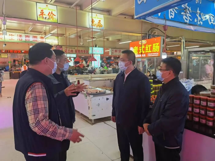 單奎副市長一行重點(diǎn)檢查了餐飲、藥店以及鴻泰水果批發(fā)市場、陽光農(nóng)貿(mào)市場等業(yè)態(tài),對各場所進(jìn)門測溫、掃碼、戴口罩以及消殺等防控措施執(zhí)行情況進(jìn)行了細(xì)致檢查。