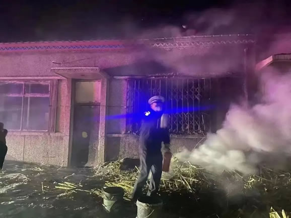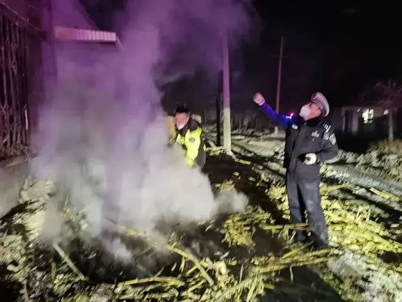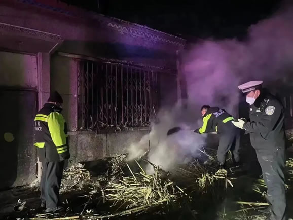 到達現(xiàn)場后,發(fā)現(xiàn)現(xiàn)場的三間平房門窗和旁邊柴草垛已經(jīng)燃燒起來,張曉偉高喊著“大家注意安全”讓房主將電閘拉下后冒著濃煙沖進屋內,快速搜尋后,確定屋內沒有人和其他易燃易爆物品,此時他已顧不上被煙嗆的咳嗽不斷,眼淚漣漣!奮不顧身帶領民警張廣天和楊旭東等5名輔警拿著滅火器沖入火場滅火,經(jīng)過眾人二十分鐘的努力,現(xiàn)場已看不到明火,此時消防大隊官兵和派出所民警趕到現(xiàn)場將火徹底撲滅。求助群眾望著全身淋濕被熏黑的交警們感動的連連道謝,由于撲救及時沒有蔓延到周邊住戶房屋,保護了人民群眾生命和財產安全,火被撲滅后,張曉偉帶領六名民輔警返回了疫情防控的崗位中。
