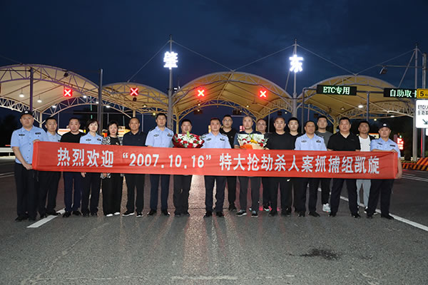 正義可能會遲到,但永遠(yuǎn)不會缺席。近日,肇東市公安局通過縝密偵查、合成作戰(zhàn),跨越兩省三地,成功偵破“2007.10.16”特大搶劫殺人案,一舉將涉案的3名犯罪嫌疑人全部緝捕歸案,至此該起16年前搶劫殺害出租車司機(jī)案成功告破。此案的偵破,彰顯了法律的公平正義,被害者沉冤得雪,偵破命案積案專項行動再添新戰(zhàn)果,夏季治安打擊整治行動取得“開門紅”。7月9日,肇東市公安局在哈大高速公路肇東收費站舉行儀式,歡迎“2007.10.16”特大搶劫殺人案抓捕組凱旋。
