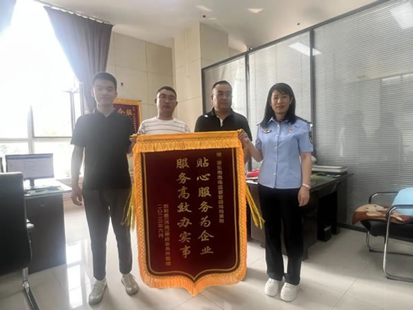 7月25日上午,山東省濟南市泰和泰(濟南)律師事務(wù)所人員專程把一面寫著“貼心服務(wù)為企業(yè),服務(wù)高效辦實事”的錦旗送到肇東市市場監(jiān)督管理局檔案股工作人員的手中,衷心感謝她們在檔案提供利用服務(wù)過程中優(yōu)質(zhì)、高效、熱情、耐心的服務(wù)。