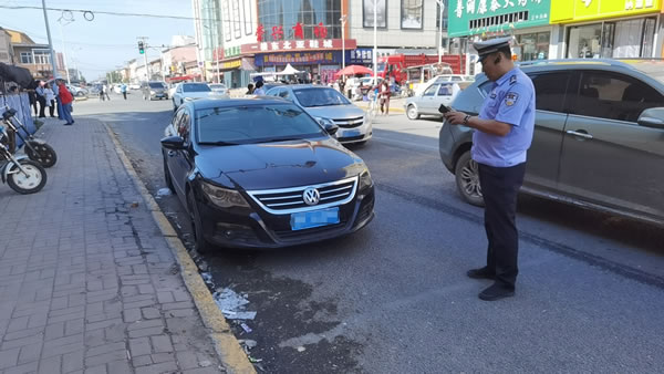 在昌五鎮(zhèn)正陽(yáng)街,由于通行車輛較多,路面又相對(duì)較窄,如遇違停車輛則極易發(fā)生交通擁堵。交警對(duì)現(xiàn)場(chǎng)違停車主進(jìn)行勸離或要求其及時(shí)停入車位,對(duì)未在現(xiàn)場(chǎng)的違停車主,交警通過(guò)電話通知其及時(shí)駛離,對(duì)未按要求移開(kāi)的車輛,民警予以粘貼違法停車處罰單并拍照取證,對(duì)嚴(yán)重影響其他車輛通行的違停車輛一律進(jìn)行拖離,確保轄區(qū)道路交通環(huán)境安全、有序、暢通。