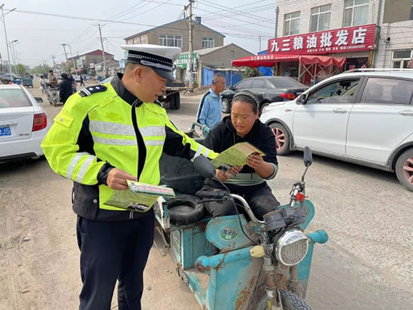 大隊民輔警以高度負責的工作態(tài)度,走進各鄉(xiāng)鎮(zhèn)村屯,在村干部的積極支持下,包保民輔警挨家挨戶登記機小型客車、低速載貨汽車、農用車等機動車輛及駕駛人信息。為群眾發(fā)放《秋收道路交通安全須知》、《一盔一帶》、《遠離酒駕、平安出行》等宣傳資料,面對面宣講法律法規(guī)和安全常識,解釋農民朋友提出的疑問,解決實際存在的問題。對農村秋收使用的四輪車、農用機械等車輛進行檢查,對反光標識缺失、失效的車輛,當場免費為其粘貼。通過零距離接觸、心貼心交流,直接拉近了警民關系,為保秋收、壓事故打下良好基礎。