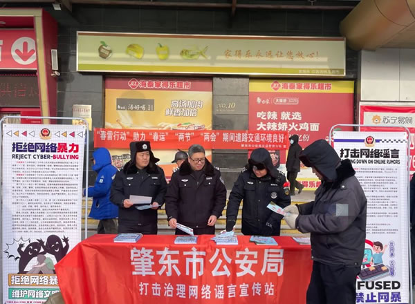 為深入推進打擊整治網絡謠言專項行動,營造良好的社會輿論氛圍,提升廣大群眾對網絡謠言的辨別能力。1月30日,肇東市公安局網安大隊聯(lián)合公共關系大隊采取多種形式的網絡謠言打擊整治專題宣傳活動。