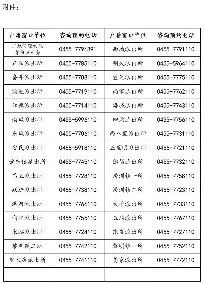 附件:公安機(jī)關(guān)戶籍窗口單位咨詢及預(yù)約電話