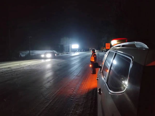 肇東市公安局交警大隊(duì)和國、省道沿線派出所民警輔警全員上崗,緊盯積雪結(jié)冰重點(diǎn)部位和車流密集場(chǎng)所周邊路段,積極采取措施,采取定點(diǎn)執(zhí)勤與流動(dòng)巡邏相結(jié)合的方式,加強(qiáng)路面管控和交通疏導(dǎo),全力防事故、保暢通。同時(shí),增派人手,一旦發(fā)生交通事故,第一時(shí)間到達(dá)現(xiàn)場(chǎng)處置,并及時(shí)疏導(dǎo)交通,引導(dǎo)車輛有序通行。
