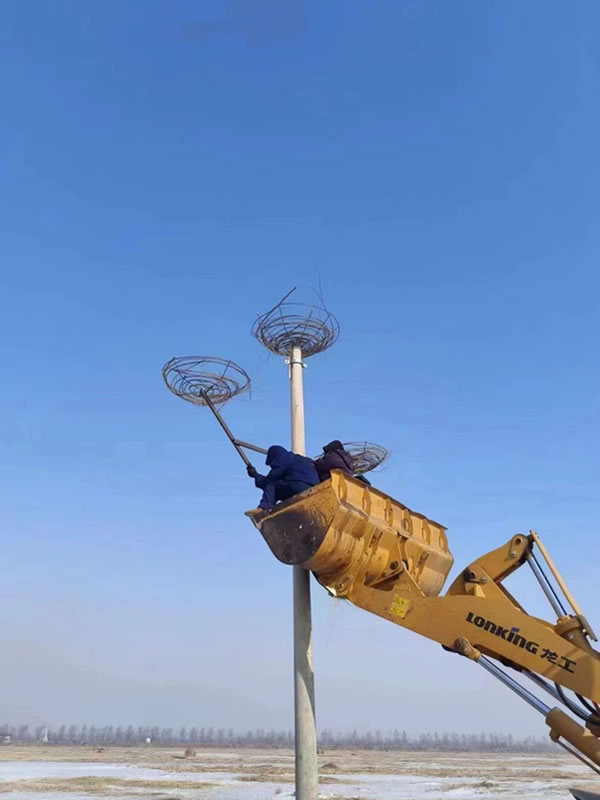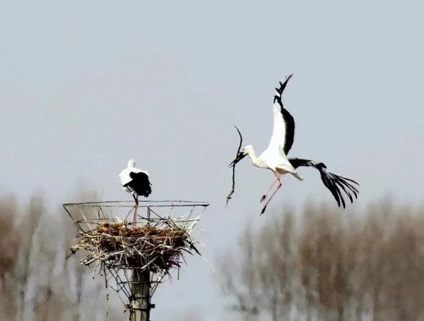 肇東市千鶴島風(fēng)景區(qū)東方白鸛人工鳥巢陸續(xù)架設(shè)搭建完成!