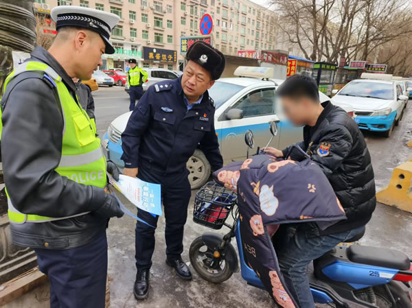 行動(dòng)之初,首先營(yíng)造強(qiáng)大的宣傳聲勢(shì)。通過傳統(tǒng)媒體和新媒體以及張貼標(biāo)語、海報(bào)、樹立展板、發(fā)放宣傳單等多種方式,高頻次、大范圍、多途徑進(jìn)行宣傳,并充分利用車管所、電動(dòng)自行車登記上牌點(diǎn)、交通違法和事故處理窗口、執(zhí)勤執(zhí)法站點(diǎn)等交管宣傳陣地,常態(tài)化開展宣傳,將“一盔一帶安全常在”理念深植于民眾內(nèi)心。