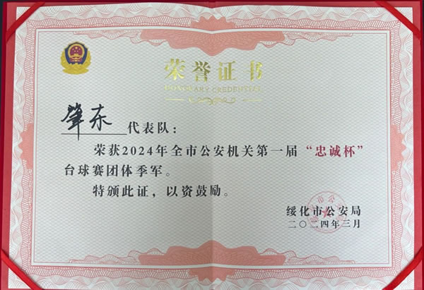 肇東市公安局在綏化市公安局第一屆“忠誠(chéng)”杯臺(tái)球比賽暫獲佳績(jī)