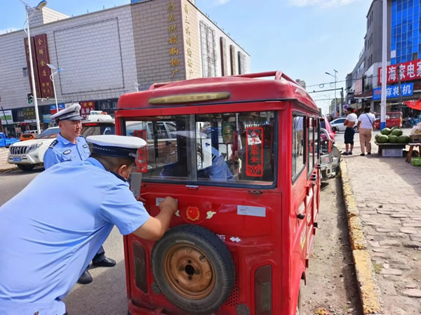 同時,為沒有粘貼反光標(biāo)識和反光標(biāo)識殘缺、陳舊的農(nóng)用車輛、三輪車等免費(fèi)粘貼安全反光標(biāo)識,提升車輛夜間通行安全系數(shù),為農(nóng)民朋友駕車出行提供安全保證,筑牢道路交通安全防線。