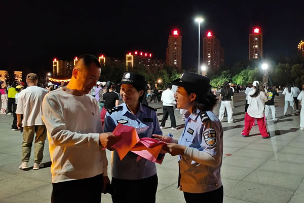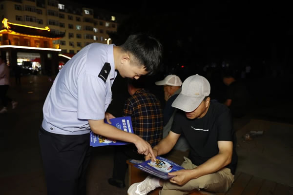 民警利用夜間群眾休閑納涼的有利時(shí)機(jī),通過(guò)集中宣傳和定點(diǎn)講解等方式,提醒群眾增強(qiáng)安全防范意識(shí)。同時(shí),充分發(fā)揮社區(qū)群眾聚集多、消息傳播快、宣傳精度高優(yōu)勢(shì),發(fā)放宣傳資料把“五防”知識(shí)送上門、讓安全知識(shí)深入人心。