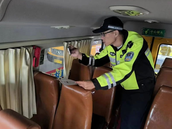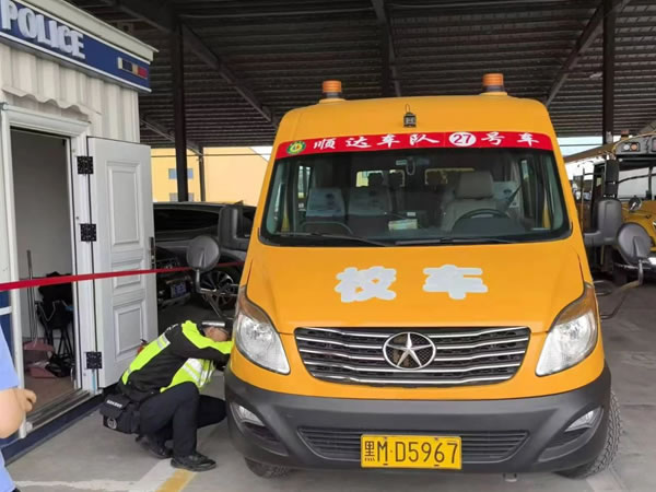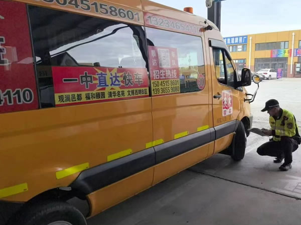 查驗過程中,民警對校車標(biāo)志、滅火器、安全帶、安全錘、緊急逃生門、車輛燈光、停車指示牌、車輛年檢及保險、輪胎的安全性能及校車技術(shù)狀況、安全駕駛情況以及校車安全管理措施落實(shí)情況等方面進(jìn)行安全大檢查。同時認(rèn)真核對了校車駕駛?cè)说鸟{駛資質(zhì),聽取了校車負(fù)責(zé)人對校車出行方式、安全隱患排查整治、企業(yè)主體責(zé)任落實(shí)情況介紹,并要求校車駕駛?cè)艘杂X遵守交通法規(guī),安全行駛、平安出行。