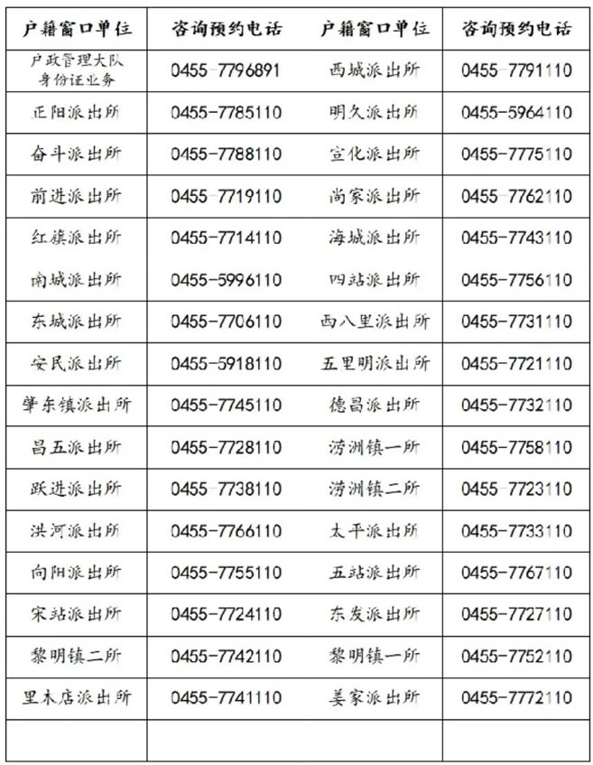 附件:公安機(jī)關(guān)戶籍窗口單位咨詢及預(yù)約電話