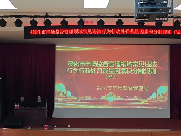 李英巍科長詳細闡述了市場監(jiān)督管理領域常見違法行為行政處罰裁量因素積分制規(guī)則,并宣讀了《綏化市市場監(jiān)督管理領域常見違法行為行政處罰裁量量化表》,此規(guī)則進一步規(guī)范了市場監(jiān)督執(zhí)法人員的自由裁量權,統(tǒng)一了我市市場監(jiān)管部門行政處罰自由裁量權適用規(guī)則,統(tǒng)一行政處罰事項,統(tǒng)一法律依據(jù),統(tǒng)一裁量幅度,為依法行政、合理行政提供了可靠依據(jù),確保公正執(zhí)法、統(tǒng)一執(zhí)法。