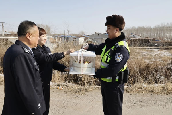 “祝你生日快樂!”一句簡單的祝福,一個精心準備的專屬蛋糕,一張張戰(zhàn)友暖心的笑臉。3月5日,肇東市公安局政治處副主任帶領(lǐng)政治處民警來到昌五派出所,將一個特別的生日蛋糕送到一線輔警胡瀚卿手中。