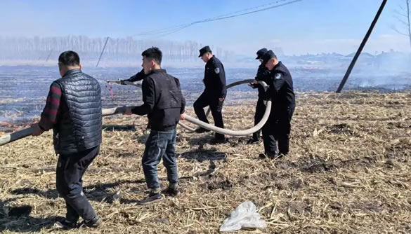 到達現(xiàn)場后,只見玉米地壟溝中的秸稈大面積起火,火勢熊熊,濃煙滾滾。五里明派出所的工作人員沒有絲毫猶豫,迅速展開消防救火工作。李華龍、王宇等四人分工明確,配合默契,一邊疏散周邊群眾,一邊向火場噴水救火。在五里明派出所工作人員的奮力撲救下,火勢得到了初步控制。隨后,肇東市消防大隊工作人員也趕到了現(xiàn)場。兩支隊伍迅速匯合,共同投入到緊張的滅火戰(zhàn)斗中。在大家的共同努力下,經過一段時間的奮戰(zhàn),大火終于被成功撲滅。