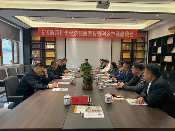 為了進一步推進宣傳活動,副局長武立志帶領(lǐng)經(jīng)偵大隊民輔警與市工商聯(lián)召開“5.15”防范打擊經(jīng)濟犯罪宣傳利企護商座談會,會上武立志同經(jīng)偵民警圍繞如何保護企業(yè)權(quán)益、護航企業(yè)發(fā)展,堅持源頭防范侵害企業(yè)的經(jīng)濟犯罪,動態(tài)聯(lián)合企業(yè)進行預(yù)警,同時經(jīng)偵民警對企業(yè)提出的關(guān)于經(jīng)濟犯罪的疑問一一進行解答,并為企業(yè)講解了非法集資、組織、領(lǐng)導(dǎo)傳銷、職位侵占、合同詐騙等經(jīng)濟犯罪的典型案例,對作案手法、作案特點進行了詳細的講解,提高企業(yè)對經(jīng)濟犯罪的防范能力,從根本上遏制經(jīng)濟犯罪的發(fā)生。