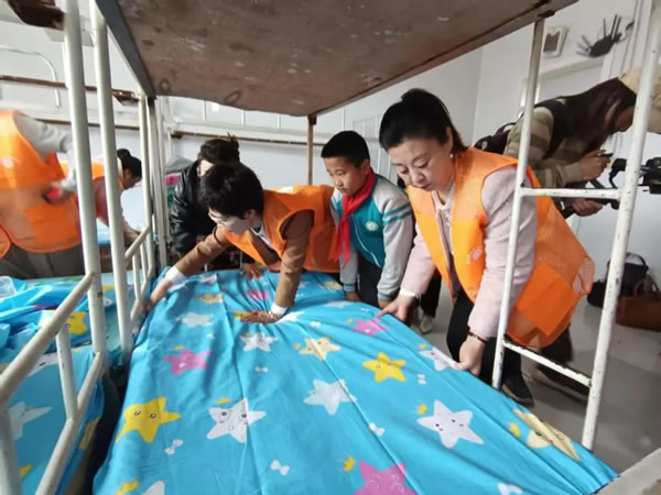 劉鐵波一行先后深入學生宿舍、食堂和教室進行實地查看。他詳細聽取學校負責人生源及教師隊伍建設等情況的匯報,仔細詢問孩子們的生活起居安排、食堂飲食衛(wèi)生情況、教學設施及學習情況,同時對婦聯愛心媽媽伴讀表示肯定。