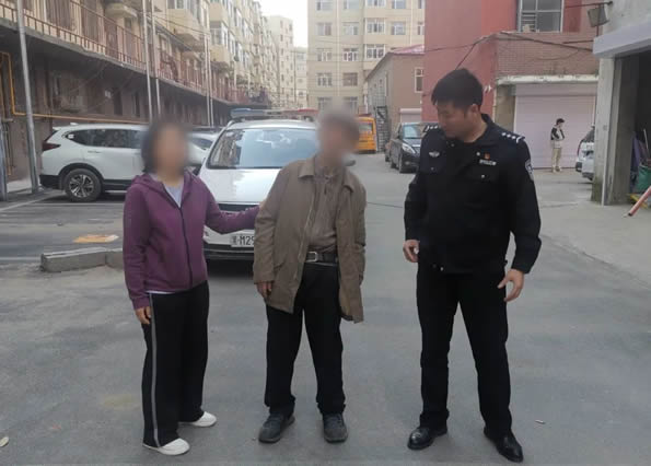 接警后,尚家派出所工作人員立即出警,到現(xiàn)場(chǎng)后,發(fā)現(xiàn)老人已被路過(guò)的好心人攙扶到路邊,上前詢問(wèn)老人情況,老人語(yǔ)言不清,說(shuō)不清情況,身上的定位器電量耗盡。派出所工作人員王立濤、李海洋將老人攙扶到警車?yán),詢?wèn)老人家庭情況及住址,老人耳聾,多次詢問(wèn)后,老人說(shuō)自己叫董道良,自己二兒子叫董平,現(xiàn)在已退休,自己在肇東市林業(yè)局樓居住,王立濤、李海洋駕車將老人送到肇東市八道街林業(yè)局家屬樓,經(jīng)向樓區(qū)住戶詢問(wèn),稱老人在四單元401室居住,李海洋邊上樓敲開401室的房門,詢問(wèn)是否有老人走失時(shí),老人的兒媳激動(dòng)的說(shuō)有有,我公公早上去公園溜達(dá)時(shí),一直沒有回家,放在身上的定位器停止工作,家里人都急壞了,一直尋找沒有找到,正準(zhǔn)備打電話報(bào)警求助,聽到派出所工作人員將老人送回來(lái)了,兒媳快步來(lái)到樓下,來(lái)到公公身邊,對(duì)派出所工作人員 一個(gè)勁的表示感謝,嘴里說(shuō)著,謝謝你們了,真的太感謝了!看見老人安全到家了,囑咐完家屬后,王立濤、李海洋駕車默默的離開,車后面的老人兒媳還一直揮著手送別。