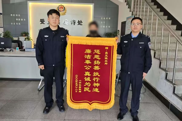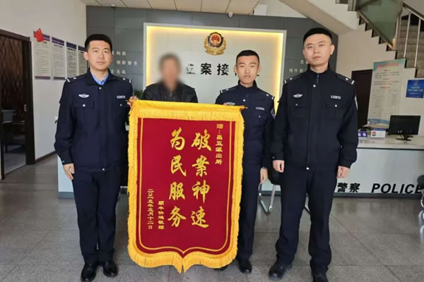 目前犯罪嫌疑人已被依法刑事處理,被盜車輛已返還受害群眾!罢鏇](méi)想到,我們還沒(méi)發(fā)現(xiàn)電動(dòng)車被盜,警察這么快就把電動(dòng)車找回來(lái)了!”5月26日上午,被害人帶著錦旗來(lái)到昌五鎮(zhèn)派出所向民警表示感謝。